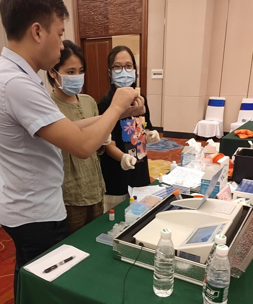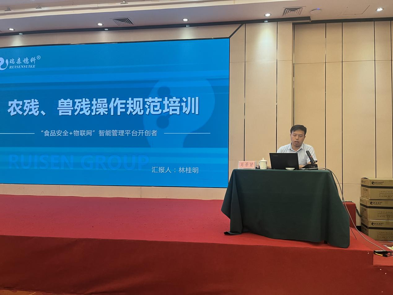 本次培訓班會議瑞森生物的培訓工作大致分為三個部分,一是食用農產品快檢技術培訓理論授課講解,二是農殘、獸殘操作規(guī)范培訓的理論授課講解,三是食用農產品快檢技術的實操培訓。在食用農產品快檢技術培訓理論講解課上,瑞森生物技術副總羅奕銘先生為與會人員講解了“快檢技術的應用”、“2000家農貿市場工作要求文件解讀”、“快檢工作存在的問題”、“快檢考核的要點”等相關理論知識;在農殘、獸殘操作規(guī)范培訓的理論授課上,瑞森生物技術經(jīng)理林桂明先生為與會人員講解了“農殘酶抑制法及膠體金檢測技術”、“檢測的注意事項及規(guī)范操作”等相關理論知識。兩位同事的講課內容深入淺出,受到了現(xiàn)場與會人員的一致好評,并取得良好效果。
